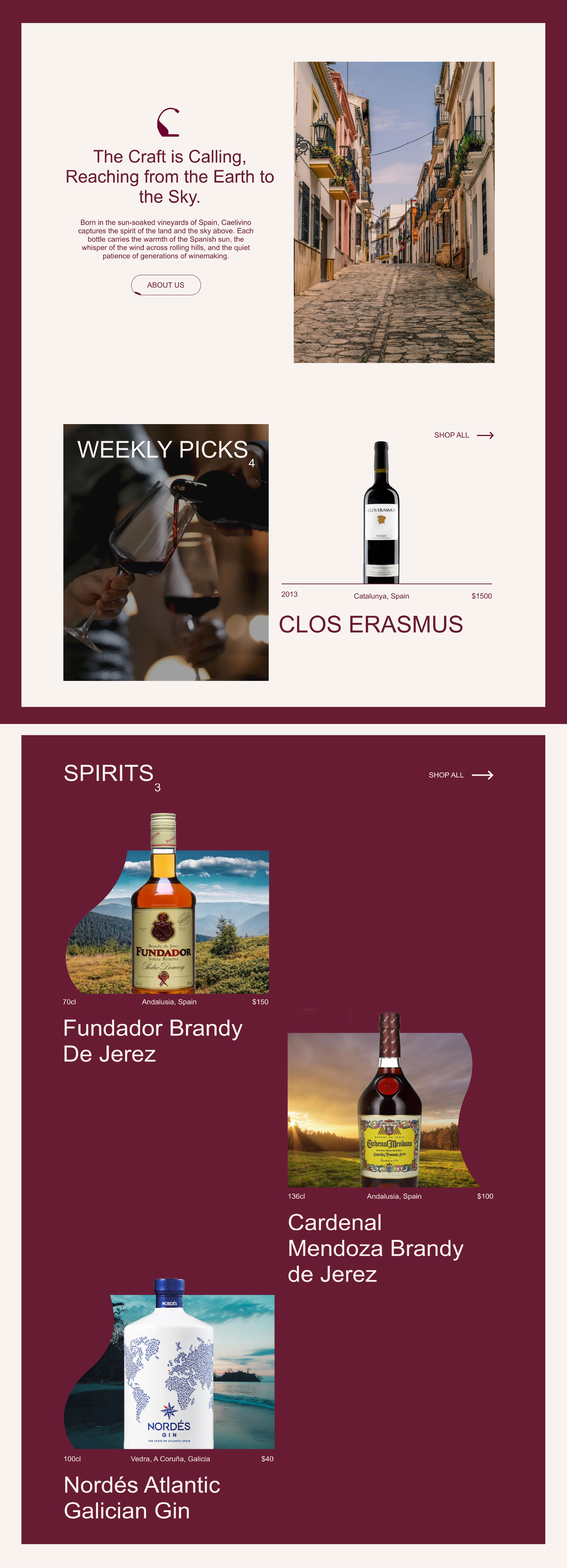 I learned how to keep the design clean and modern while still expressing Caelivino’s personality. This meant making intentional choices with typography, colour, and imagery so the brand felt refined, not stripped back.