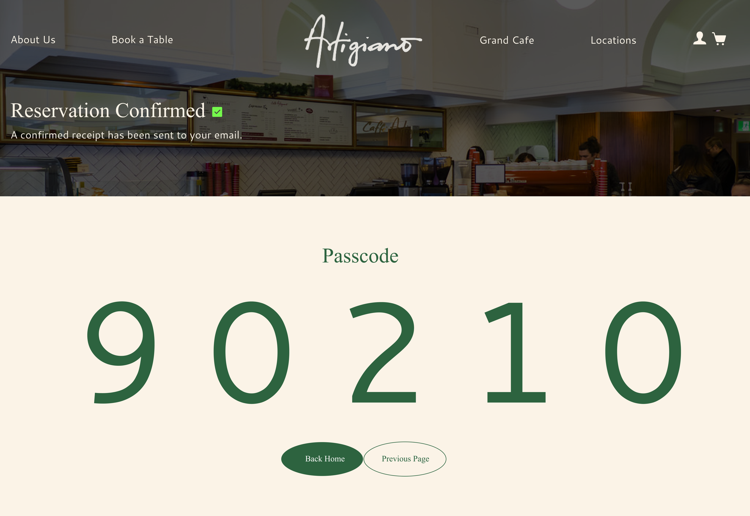 To make a reservation at Artigiano Café, users can visit the Artigiano website and navigate to the table booking feature. From there, they can view table availability and see details for each seating option. Users then select their preferred date and time, enter their contact information, and confirm the booking. Once completed, they receive a unique confirmation code to use for check-in upon arrival at the café.